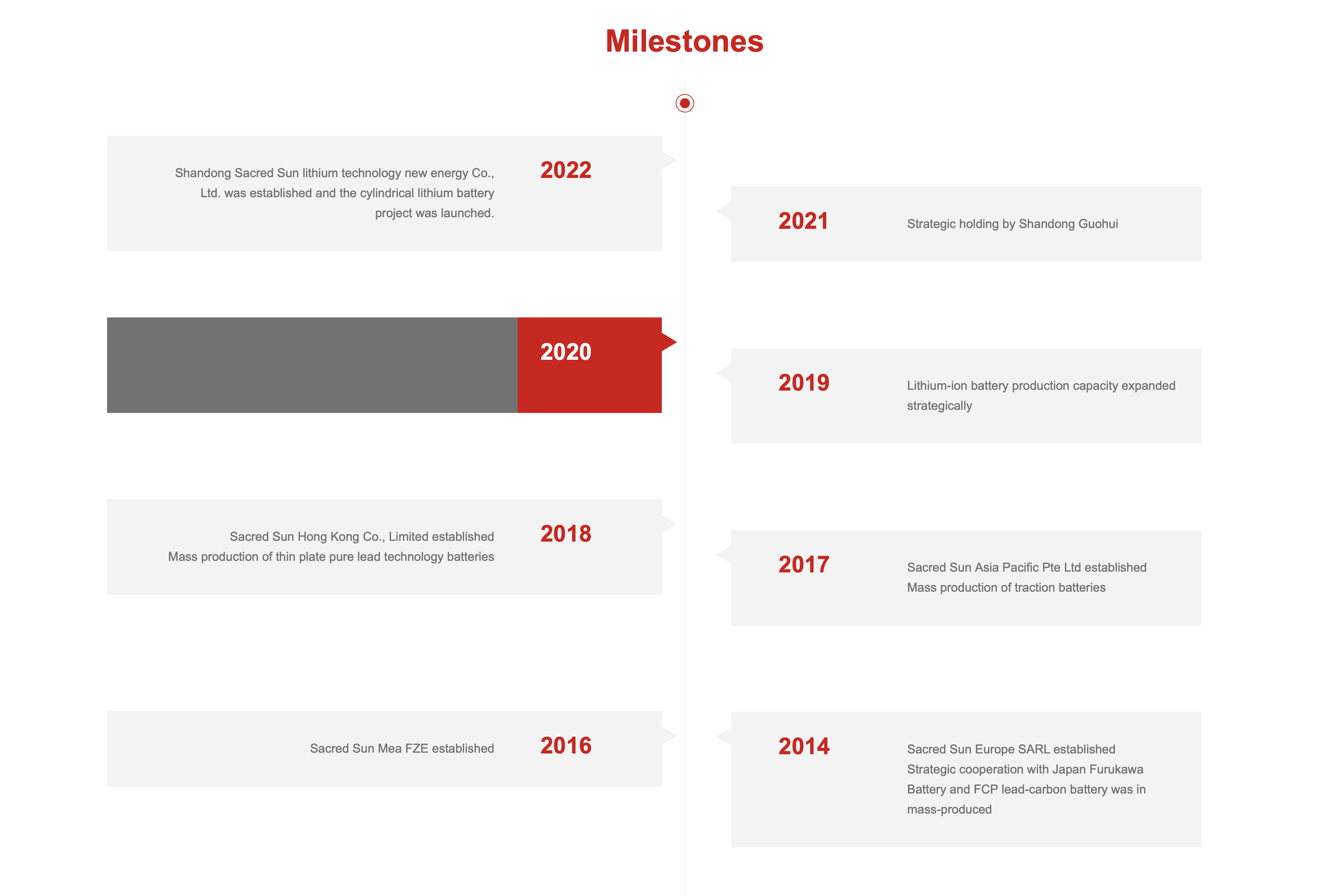 Webová stránka značky: Sacred SunShandong Sacred Sun Power Sources Co., ltd. je národní high-tech podnik založený v roce 1991 a kótovaný na burze SME v Šen-čenu od května 2011. Současným majoritním akcionářem je Shandong Development Group.